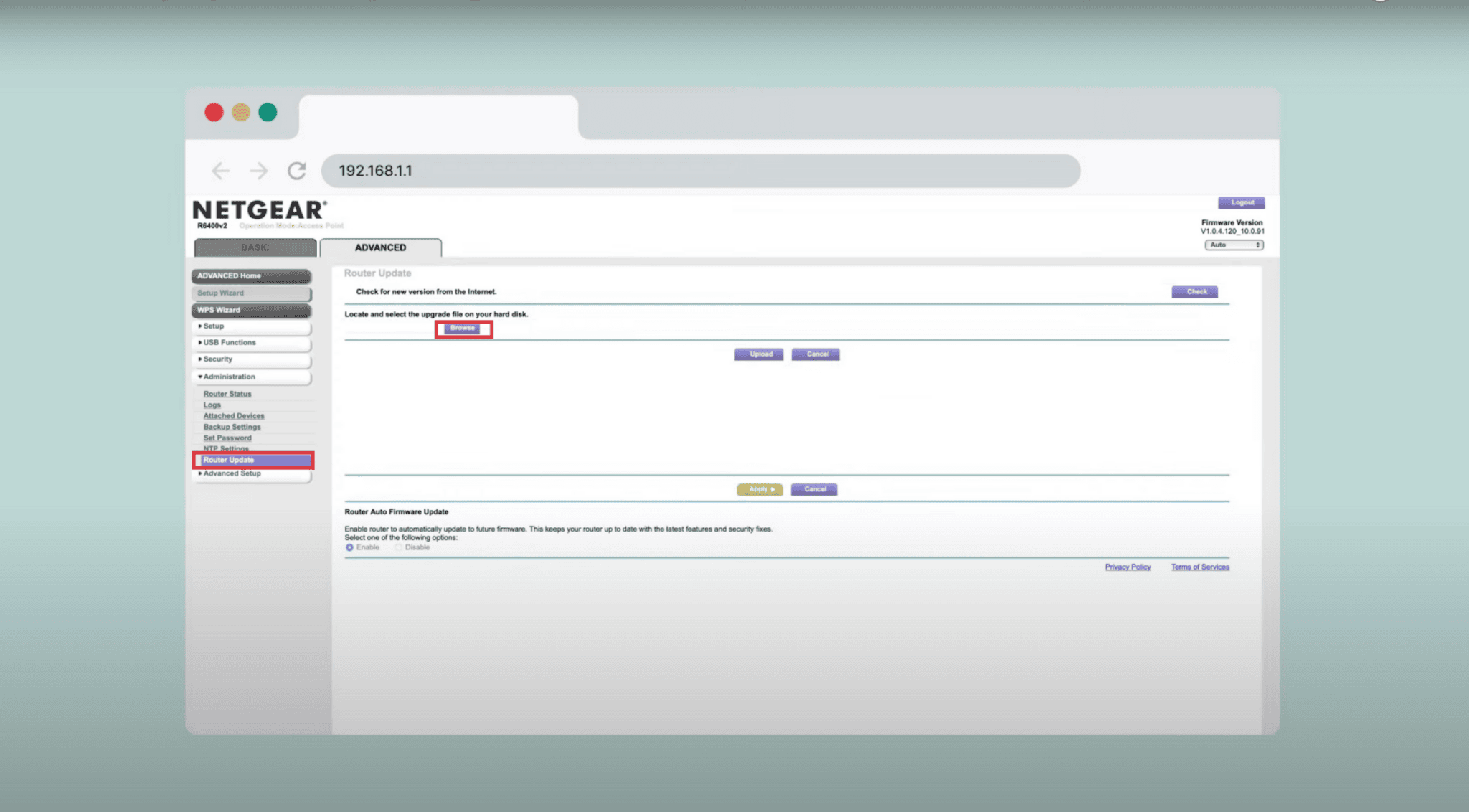 Bei Netgear müssen Sie beispielsweise auf die Schaltfläche Durchsuchen klicken und die von Ihrem VPN-Anbieter bereitgestellte VPN-Firmware hochladen.